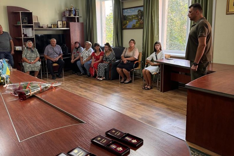 Представники Хмільницької районної державної адміністрації з болем і гордістю передали відзнаки родинам загиблих захисників.