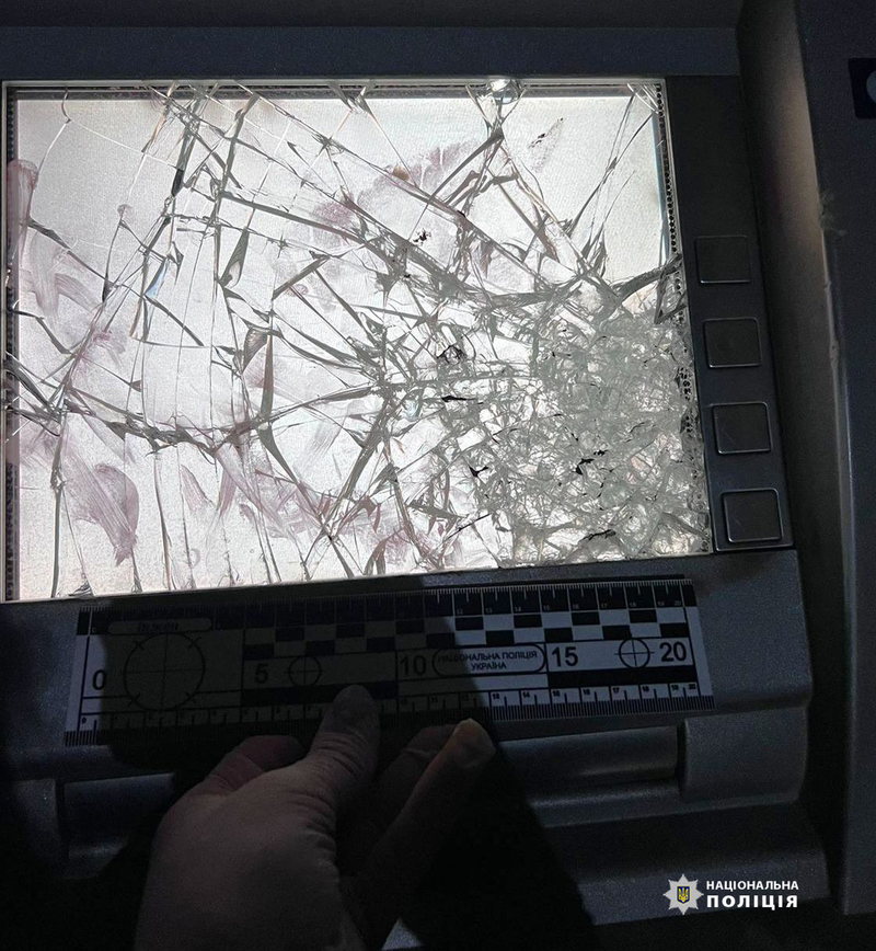 Встановлено, що чоловік під час зняття готівки вирішив зламати банкомат. Використовуючи підручні засоби, він планував дістатись до відсіку з грошима. Зрозумівши, що в нього це не виходить, правопорушник спробував проникнути до приміщення, де встановлений сам банкомат, але йому також не вдалось – спрацювала сигналізація. Поліцейські затримали зловмисника під час втечі з місця події. До повідомлення йому про підозру та обрання запобіжного заходу чоловік перебуватиме в ізоляторі тимчасового тримання.