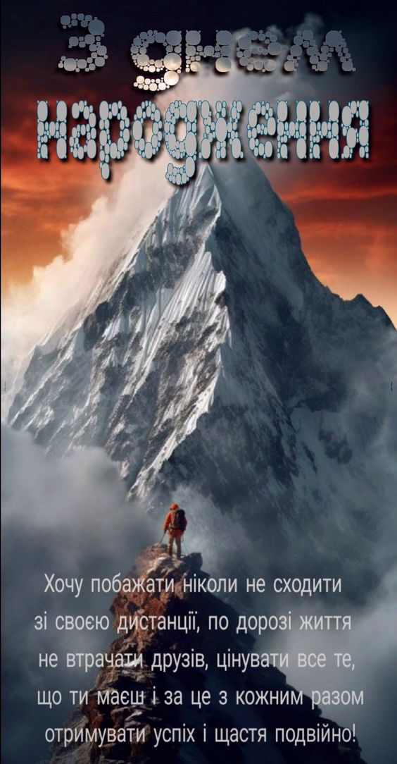Поспішаю привітати з днем народження! Бажаю, щоб кожного дня у тебе був чудовий настрій та привід для радості. Міцного здоров’я тобі, щастя та добробуту. Нехай доля буде до тебе прихильна. Більше оптимізму та гарного настрою, щоб у всьому були гармонія та баланс!
