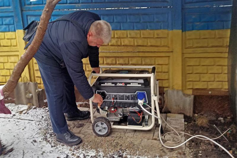 «В нас тільки щойно світло включили, то я ходив генератор вимикав, бо люди просили включити, щоб діти онлайн могли займатися, – розповідає при зустрічі Олег Побірський. – А в нас генератор потужний, він живить місця загального користування, помпу в криниці, автомати з водою та кавою тощо. Тож коли вмикається генератор – працює обладнання мобільних провайдерів в під'їздах, і таким чином в людей є інтернет. А в кого не має, бо, можливо, не купили павербанків чи ще щось, то може спуститися в підвал і тут працювати, адже у нас в підвалі тепло і є бездротовий інтернет».