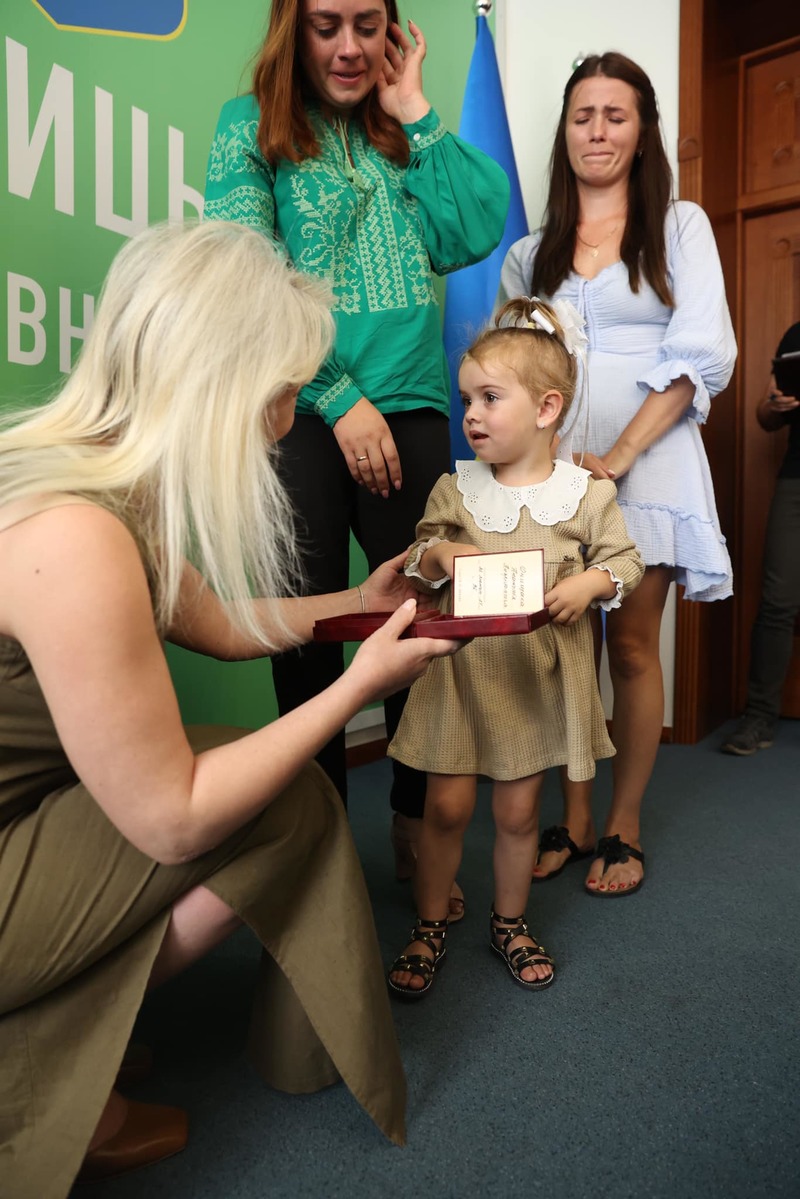 Перша заступниця начальника Вінницької ОВА Наталя Заболотна особисто передала нагороди сім'ям загиблих героїв.