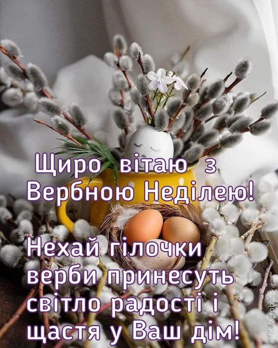 Вітаю з Вербною Неділею та від душі бажаю бути стійкою людиною, наче міцна верба, ніколи не зазнати суму та зради, завжди прагнути до світу добра та отримувати від небес можливості для досягнення щастя та успіху.