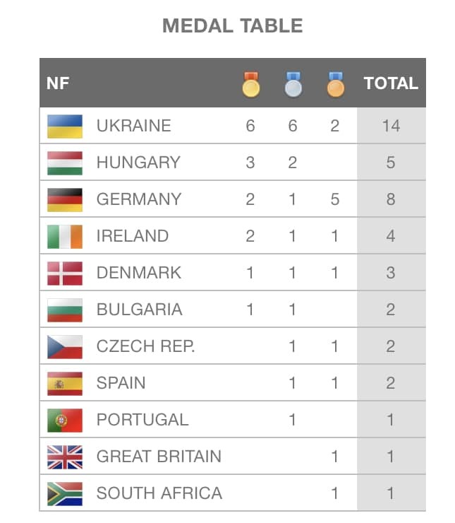 Загалом команда України виборола 14 медалей (6 – золотих, 6 – срібних, 2 бронзові) та посіла 1 місце в медальному заліку серед 10 країн світу», – йдеться у повідомленні.